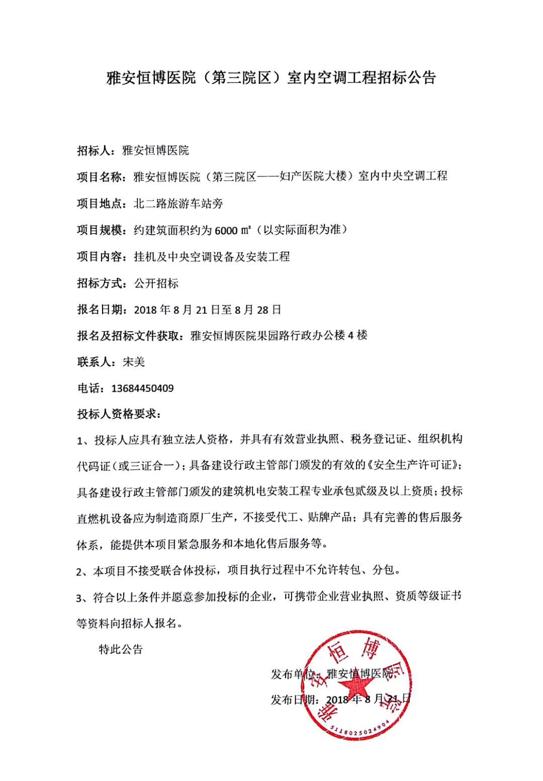 項目已完成主體工程,現(xiàn)對該項目的室內(nèi)空調工程進行公開招標。誠邀有相應資質的投標人報名參加!