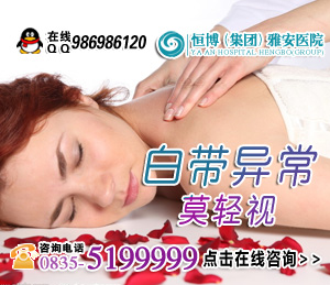 溫馨提醒:以上是關(guān)于白帶異常有什么危害的介紹,如果您想了解更多的問題或者您有就醫(yī)的需要,可與在線咨詢專家進行進一步的溝通。醫(yī)院還開展了在線咨詢,雅安恒博醫(yī)院【QQ咨詢:986986120】 醫(yī)院地址:雅安市雨城區(qū)北二路(旅游車站旁),雅安恒博醫(yī)院祝你幸福健康!
