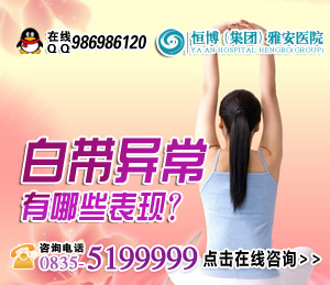 溫馨提醒:以上是關于如何判斷白帶是否異常的介紹,如果您想了解更多的問題或者您有就醫(yī)的需要,可與在線咨詢專家進行進一步的溝通。醫(yī)院還開展了在線咨詢,雅安恒博醫(yī)院【QQ咨詢:986986120】 醫(yī)院地址:雅安市雨城區(qū)北二路(旅游車站旁),雅安恒博醫(yī)院祝你幸福健康!