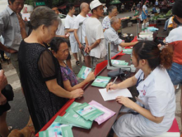 早上8.00點(diǎn),醫(yī)務(wù)人員早早的就到了義診地點(diǎn),活動(dòng)一開(kāi)始,醫(yī)護(hù)人員便緊張地忙碌起來(lái)。他們認(rèn)真地為居民測(cè)量血壓、號(hào)脈,并告知每位到場(chǎng)的受診人員“今年的天氣悶熱,氣溫不定,在家里的注意防中暑工作”。并根據(jù)各自不同的身體狀況告知了建議。同時(shí),活動(dòng)現(xiàn)場(chǎng)還為居民們發(fā)放耳鼻喉科的小冊(cè)子,中西醫(yī)結(jié)合科的免費(fèi)拔罐體驗(yàn)卡和宣傳材料,這一舉動(dòng)受到大家的一致好評(píng)。