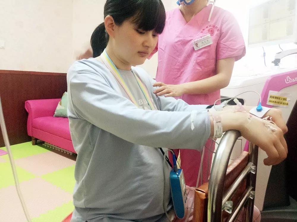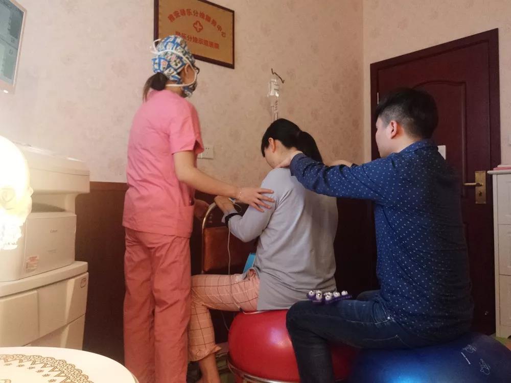 當天上午11點左右,巧巧宮口開到3指,在老公和護士的攙扶下進到快樂分娩導樂室,此時的巧巧已經疼到不能站立。