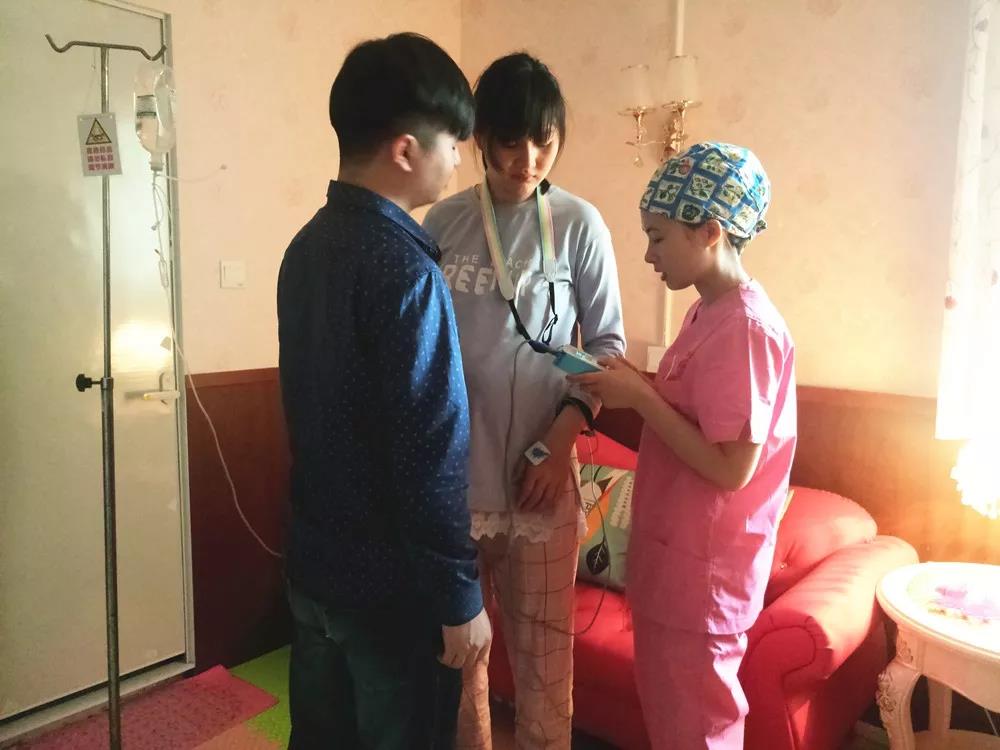 它一邊通過電極片鏈接產婦,一邊通過無線鏈接快樂分娩鎮(zhèn)痛儀的“身體”。