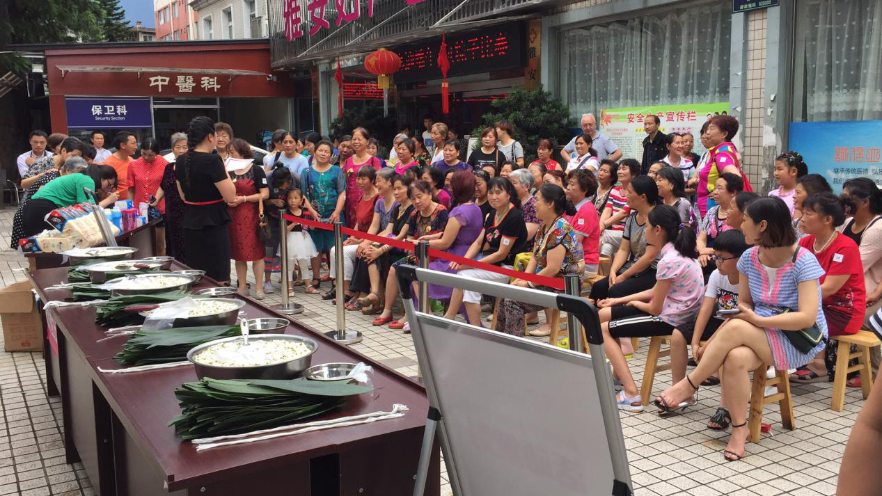 6.18日,康藏路社區(qū)、斗膽社區(qū)聯(lián)合雅安恒博醫(yī)院舉行了一場別開生面的包粽子比賽。