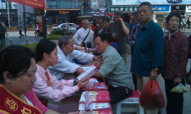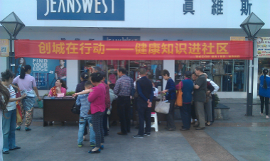 在2014年度雅安市創(chuàng)建省級(jí)文明城市的大目標(biāo)下,為進(jìn)一步提高我區(qū)市民文明素質(zhì),激發(fā)大家投身文明城市建設(shè)活動(dòng)的熱情。10月6日,雨城區(qū)婦聯(lián)聯(lián)合雅安恒博醫(yī)院吉選超市外開(kāi)展了以“創(chuàng)城在行動(dòng)——健康知識(shí)進(jìn)社區(qū)”為主題的創(chuàng)建文明城市宣傳義診活動(dòng)。短短的半小時(shí),前來(lái)義診的市民就有40多人,發(fā)放宣傳資料近200多份。