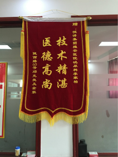 在一個(gè)晴空萬里的日子,出院沒幾天的鄧?yán)显诩胰说呐惆橄拢只氐搅?a target='_blank'>雅安恒博醫(yī)院,但是這次鄧?yán)蟻磲t(yī)院,并不是為了看病,而是送錦旗表謝意來了。鄧?yán)媳硎?,很感謝恒博醫(yī)院李主任幫助我擺脫了那么多年的痛苦,現(xiàn)在終于可以享享清福了。